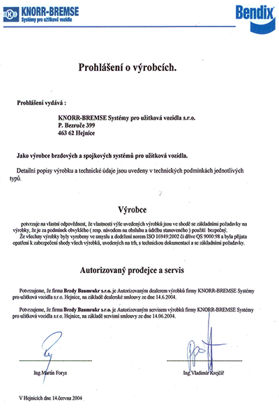 brzdových systémů nákladních vozidel, přívěsů a návěsů.